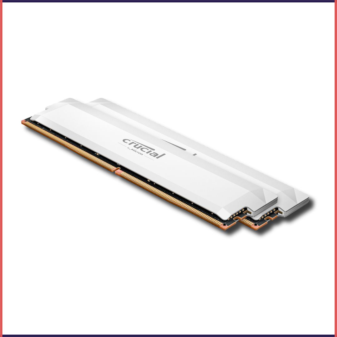 Crucial Pro DDR5-6000 64GB (32GBx2) UDIMM Gaming Memory – White delivers next-gen performance for gamers and creators. Powered by premium ICs, it offers blazing-fast 6000MT/s speeds, improved bandwidth, and stable overclocking support. Built by Crucial, it ensures reliability, sleek aesthetics, and seamless compatibility with modern DDR5 platforms—perfect for high-performance PCs.