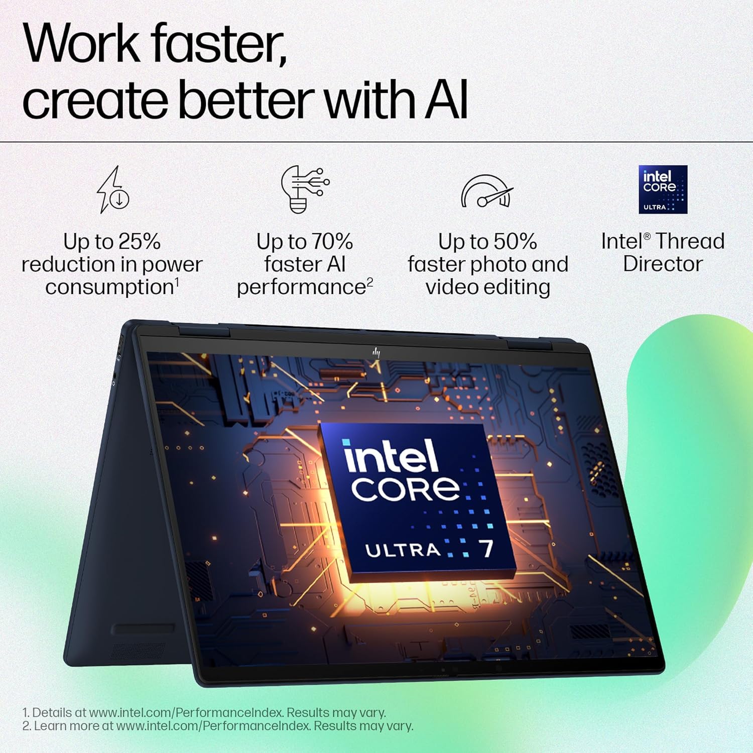 HP Envy X360 Convertible, Enhanced by AI, Intel 14th Gen Evo Core Ultra 7 155U, 14-inch (35.6 cm), 2.8K OLED, 400 nits, 32GB, 1TB SSD, Touch, 5MP IR Camera, (Win 11 Home+MSO, Blue,1.44 Kg), FC0100TU