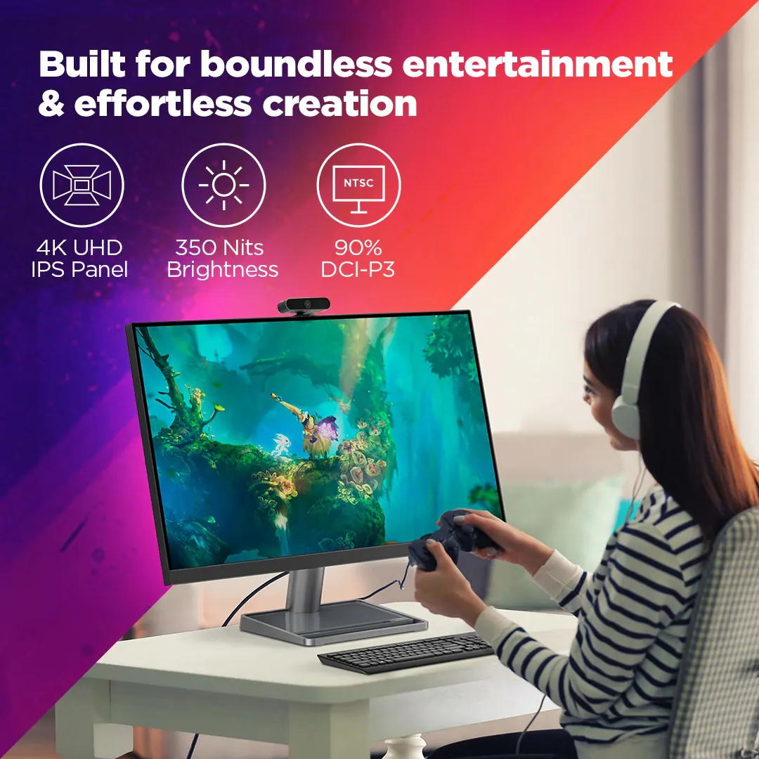 The Lenovo L32p-30 (31.5”) UHD USB-C Monitor delivers stunning 4K clarity with vibrant colors and sharp detail, perfect for work and entertainment. With USB-C connectivity, it supports fast data transfer, power delivery, and a clean single-cable setup. Paired with the Lenovo 110 Stereo USB Headset, enjoy clear audio and comfortable all-day use—ideal for meetings, multimedia, and productivity.