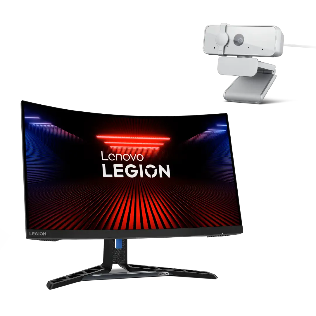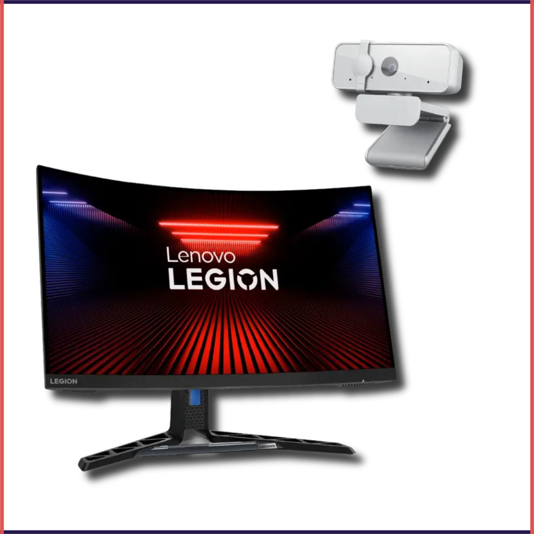Upgrade your setup with a 27-inch curved Full HD Lenovo Legion R27fc-30 monitor featuring a smooth 165Hz refresh rate, 1ms response time, and immersive visuals for work and play. Paired with the Lenovo 300 FHD Webcam, enjoy clear 1080p video, dual microphones, and plug-and-play convenience—perfect for gaming, streaming, meetings, and content creation.